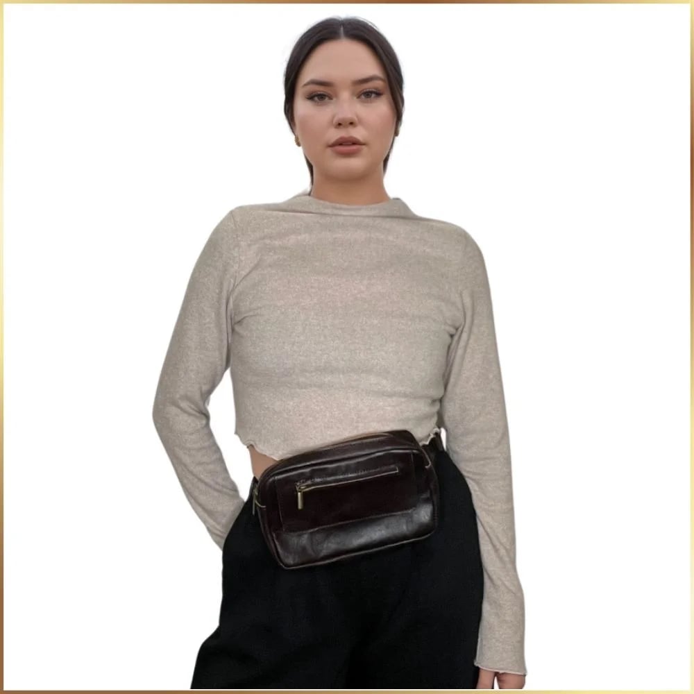 Strap: Waist or Cross-body. Adjustable. Not removable.